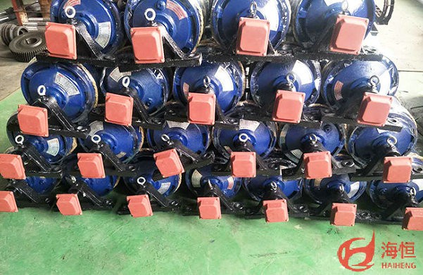 (9)滾體包膠的內置式電動滾筒,電動功率要提高一檔。